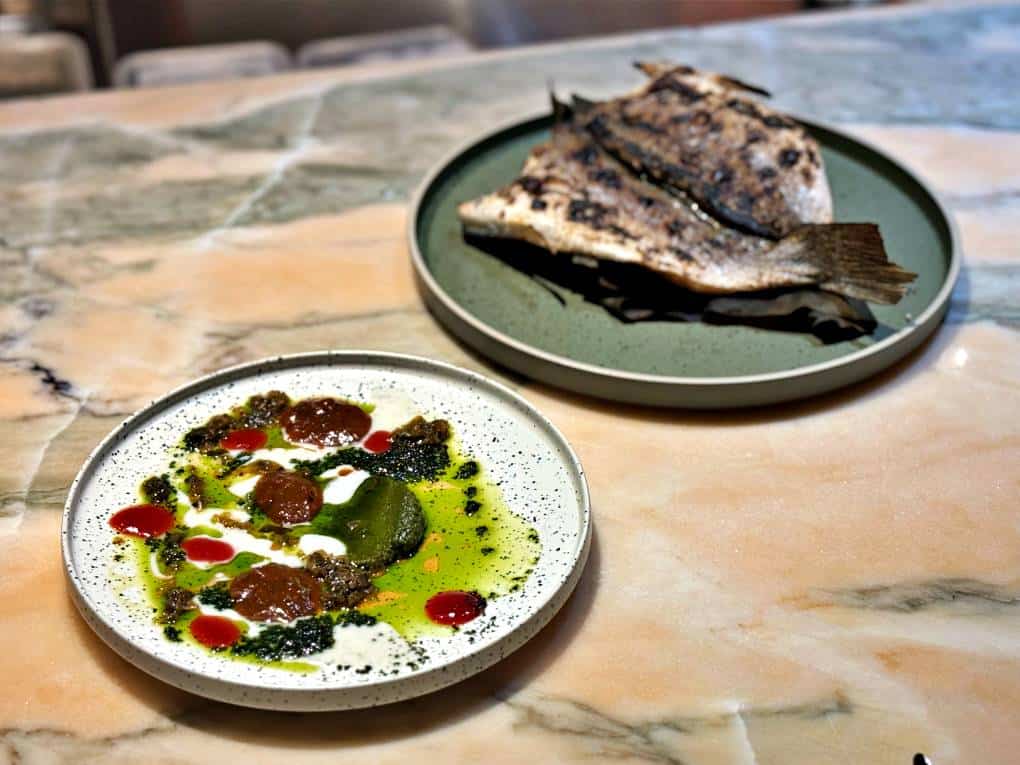 Charcoal-grilled seabass, a mosaic of sauces from Yellow Fin Horse x Nouri